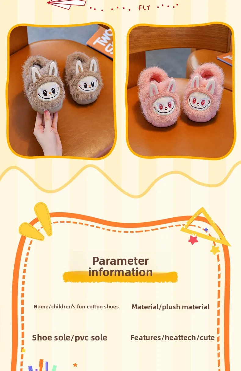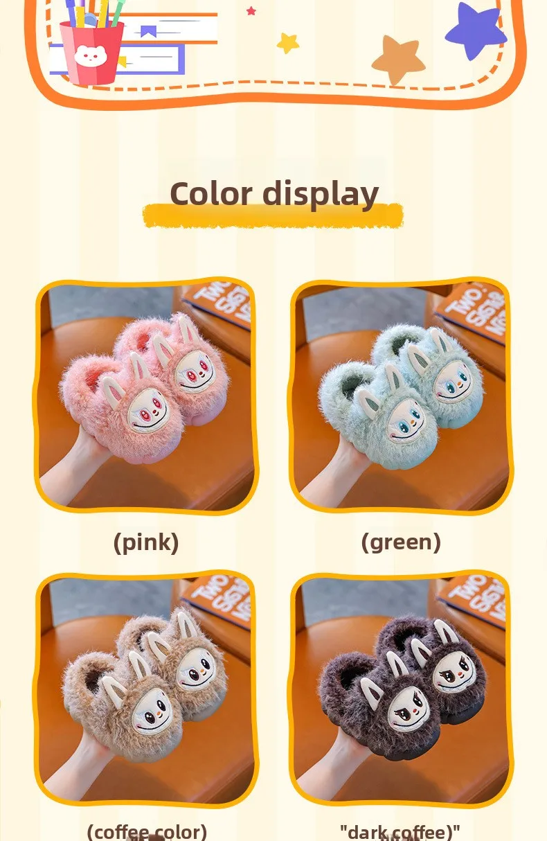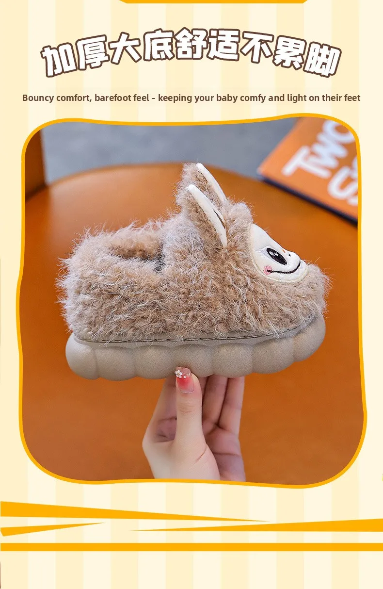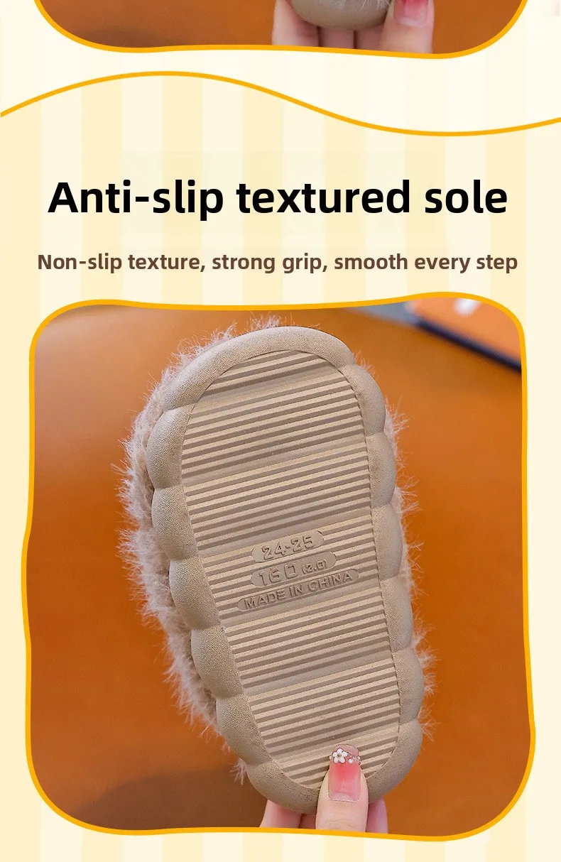 Specification: Winter Children’s Cotton Shoes 2025 Cute Warm Plush Girls Boys Slippers Faux Fur Anti Slip Flat Home Woman Slippers