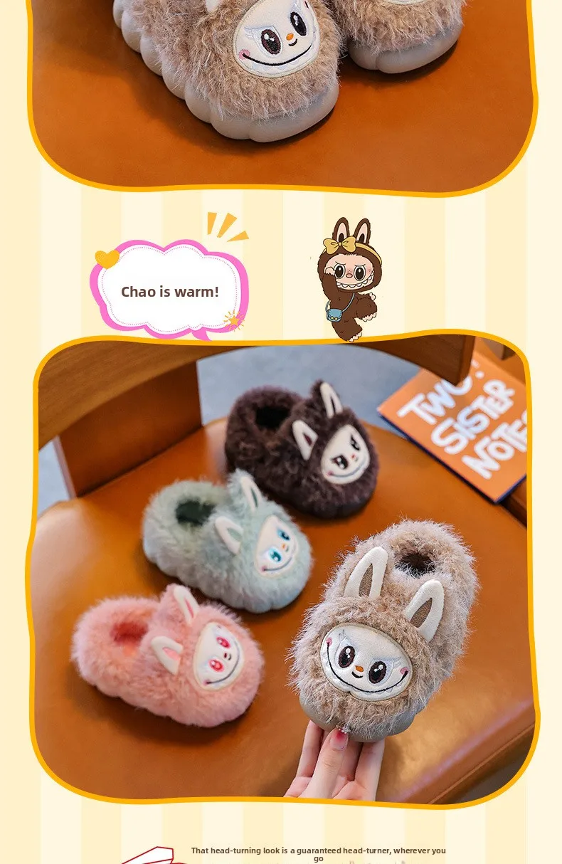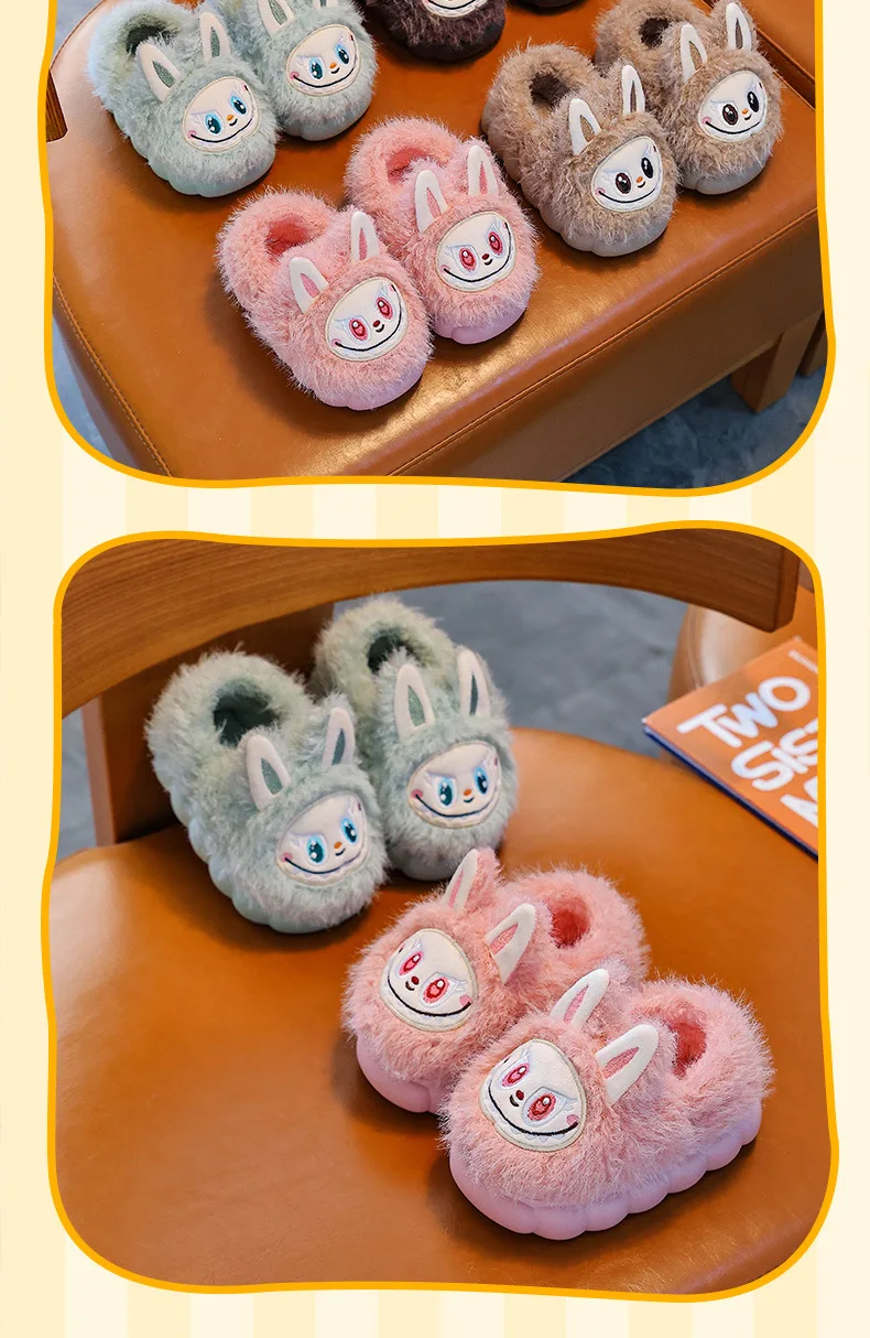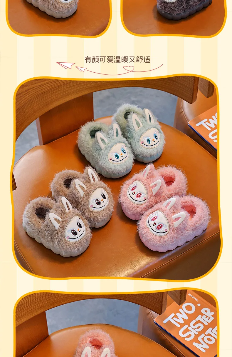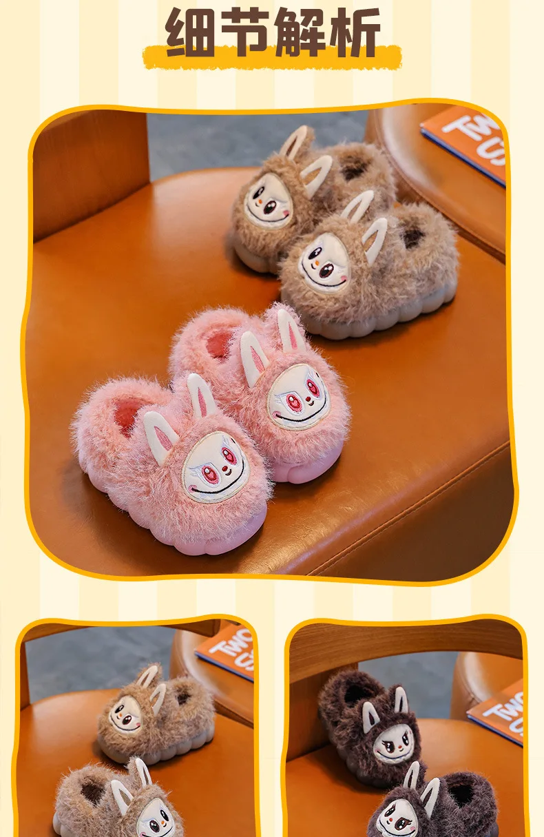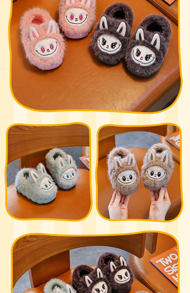 Specification: Winter Children’s Cotton Shoes 2025 Cute Warm Plush Girls Boys Slippers Faux Fur Anti Slip Flat Home Woman Slippers